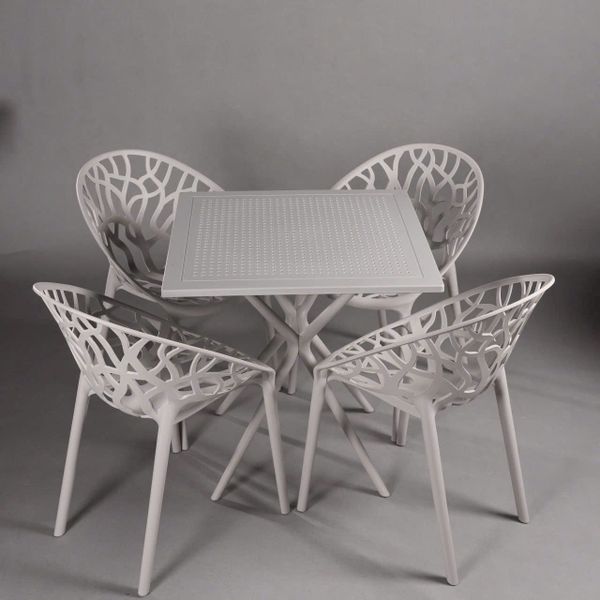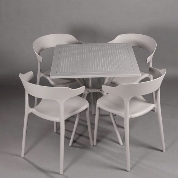 Bộ Bàn Ghế Nhựa Đúc Cao Cấp Màu Xám Nhám Bàn Vuông 70cm