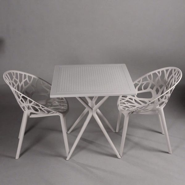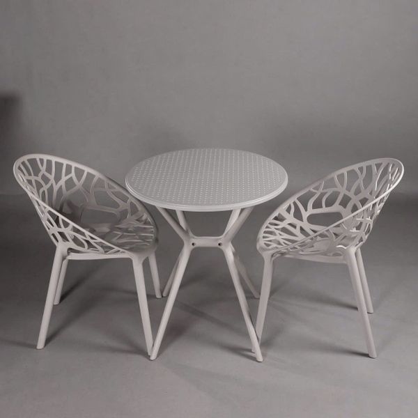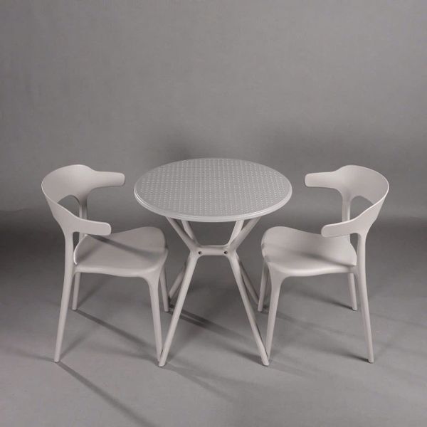 Bộ bàn ghế được sản xuất từ nhựa đúc cao cấp nguyên sinh, có khả năng chịu lực tốt, chống bay màu, chống trầy xước, thích hợp sử dụng lâu dài ở không gian ngoài trời như sân vườn, ban công, quán cà phê, nhà hàng, resort...