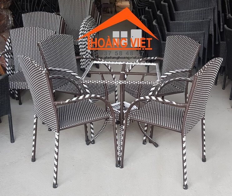 Bộ bàn ghế giả mây tay liền cao cấp gồm 4 ghế lưng tròn và 1 bàn vuông 6 tất .