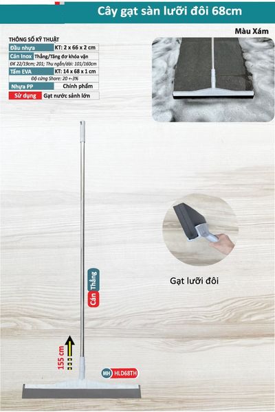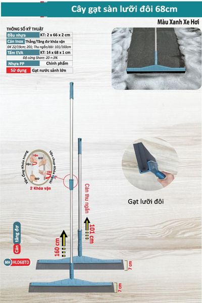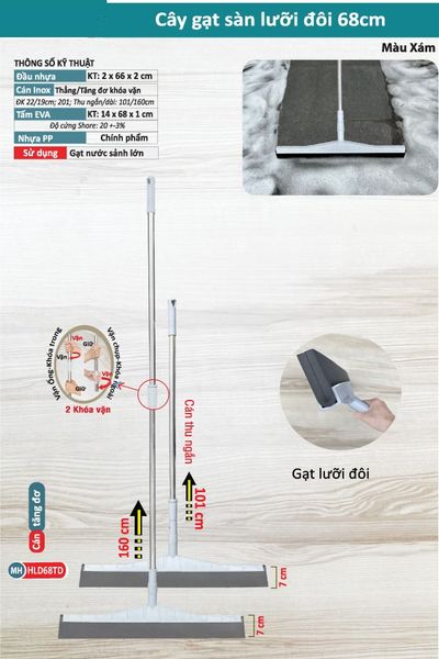 Cây Gạt Sàn Nhà Tắm 68cm – Lưỡi Đôi EVA Cao Cấp, Bám Hít Mặt Sàn