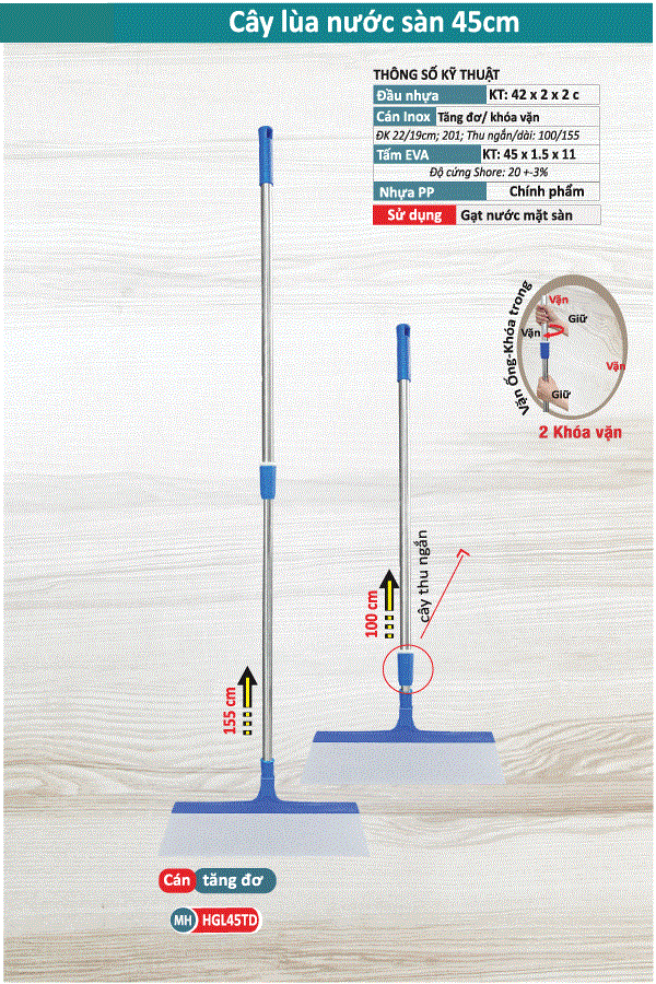 Cây Lùa Nước Sàn 45cm-Cây Gạc Nước có hai loại cán: cán thẳng và cán tăng đơ( tăng giảm )