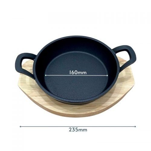 Chảo Gang Tròn 2 Quai – Kèm Đế Gỗ, Trình Bày Món Ăn Chuyên Nghiệp