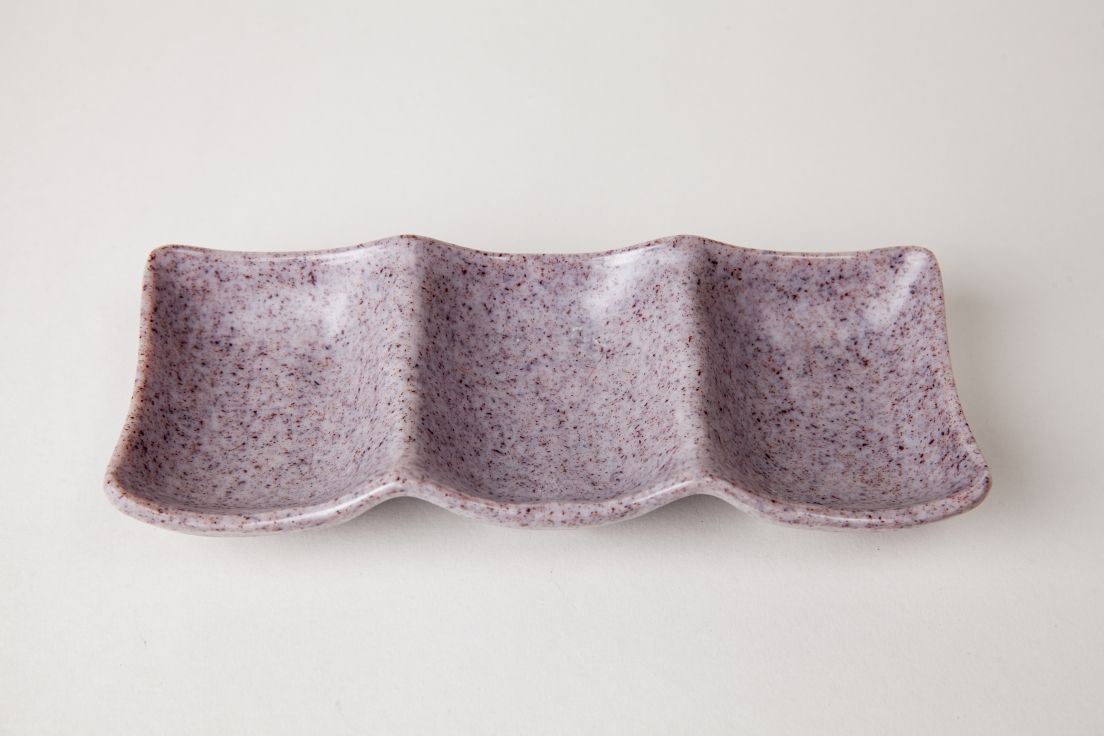 Chén Chấm 3 Ngăn C111 Nhám Màu Môn gây ấn tượng với gam màu môn tím nhẹ pha ánh xám, bề mặt phủ nhám mịn cùng hiệu ứng hạt tự nhiên, tạo cảm giác trầm ấm và tinh tế khi bày trí bàn ăn. Màu sắc không quá đậm, mang nét hiện đại nhưng vẫn gần gũi, phù hợp nhiều phong cách không gian khác nhau.