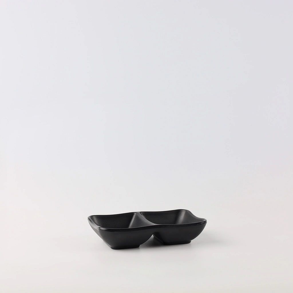 Dĩa Chấm 2 Ngăn DV319 Đen Nhám Superware dùng cho quán lẩu, nướng kiểu Hàn Quốc chứa cùng lúc nhiều loại nước chấm.