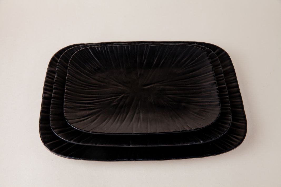 Dĩa Chữ Nhật Vân Đá Đen Nhám Fataco thuộc bộ chén dĩa màu đen nhám với thiết kế vân nổi trên bề mặt dĩa, đẹp mắt