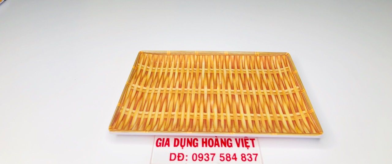 Dĩa nhựa giả mẹt tre chữ nhật nhỏ xuất xứ Việt Nam sử dụng trong gia đình, quán ăn, nhà hàng.