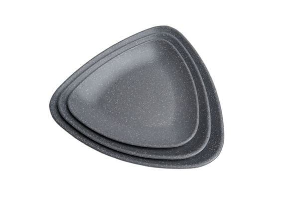 Dĩa Tam Giác Nhám Xám được sản xuất từ melamine cao cấp, bền bỉ, chắc chắn.