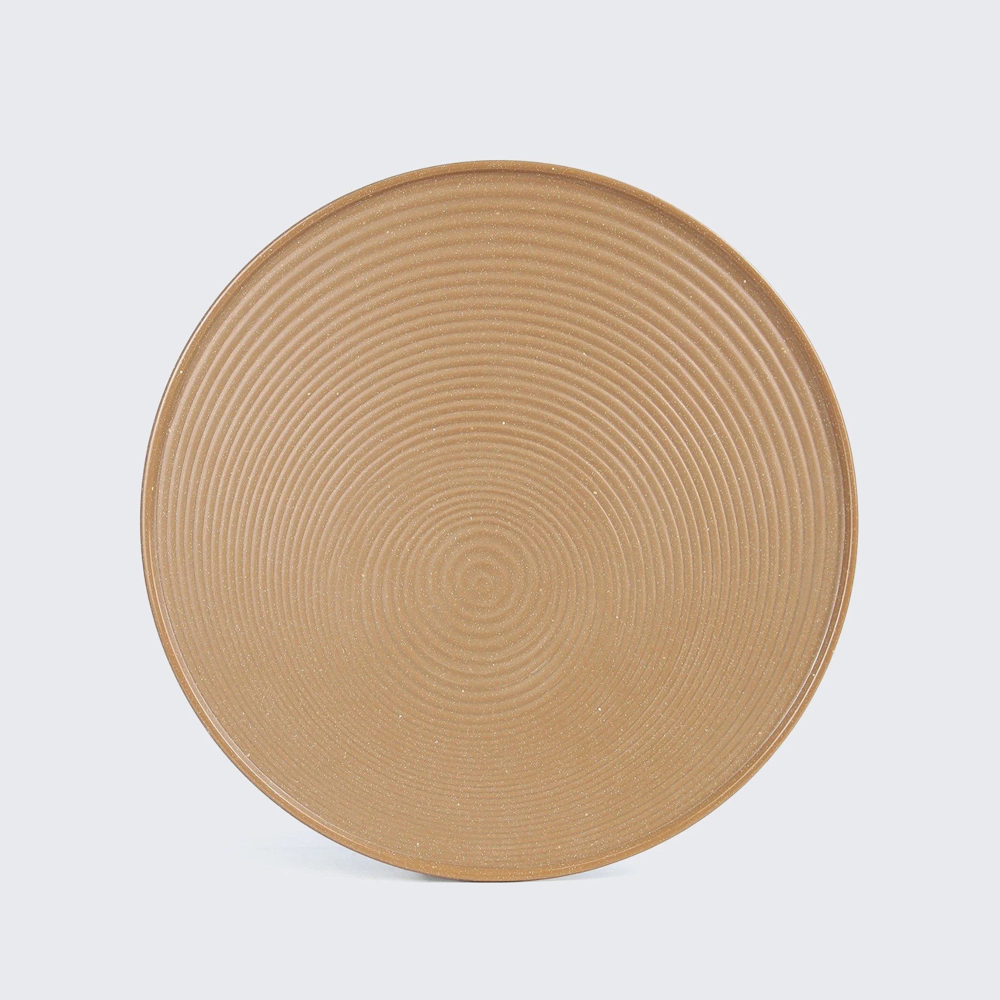 Dĩa Tròn Gân Clay Dark Browncó thiết kế độc đáo không viền, dĩa có hình trọn cạn và có gân nổi đẹp mắt.