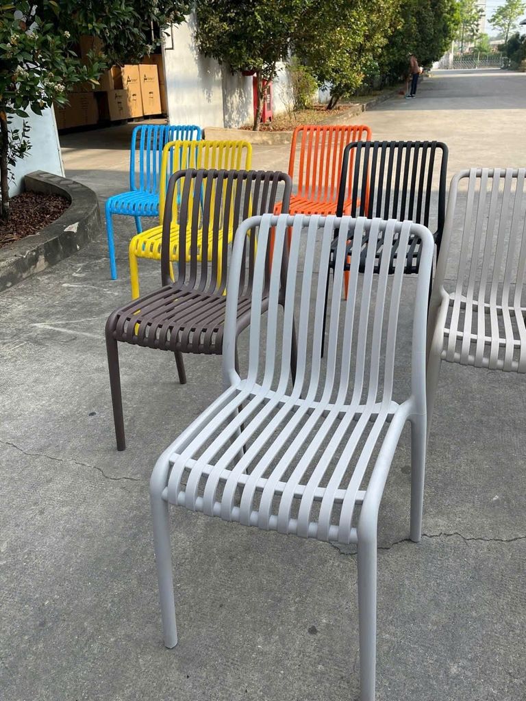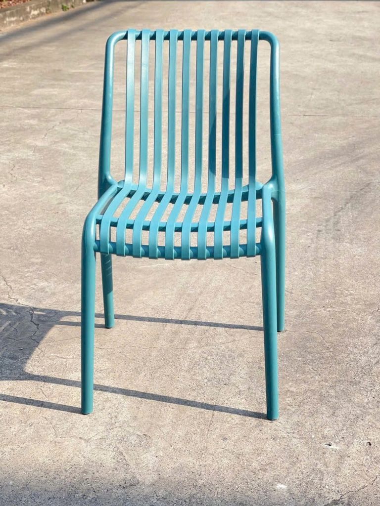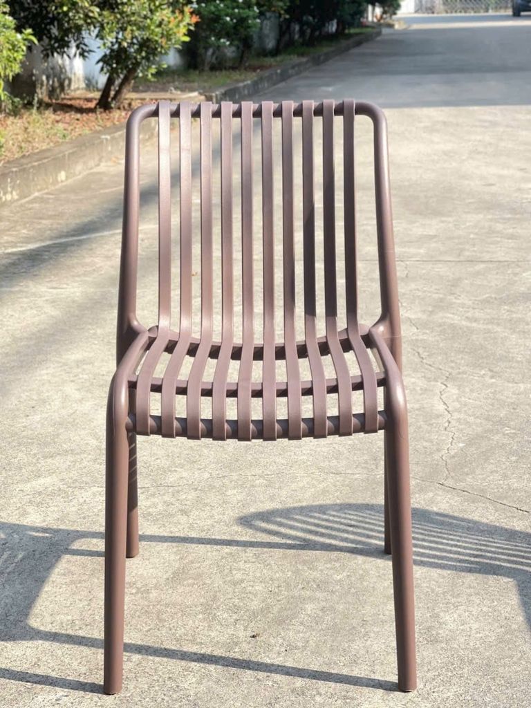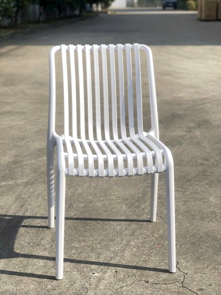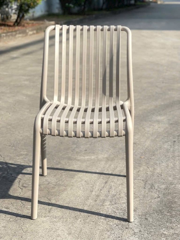 Phần thân ghế sử dụng kết cấu song nhựa chạy dọc từ tựa lưng xuống mặt ngồi, tạo cảm giác thanh thoát, thông thoáng và hạn chế đọng nước khi đặt ngoài trời. Thiết kế này giúp ghế vừa đảm bảo tính thẩm mỹ hiện đại, vừa mang lại sự thoải mái khi ngồi lâu. Bề mặt ghế dễ vệ sinh, không thấm nước và ít bị ảnh hưởng bởi điều kiện thời tiết.