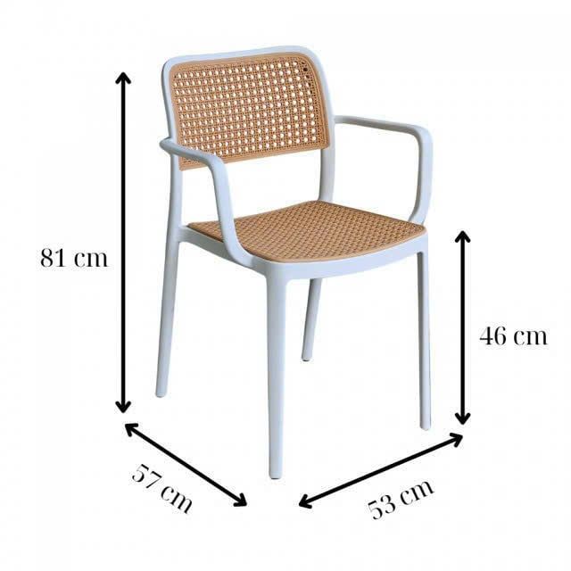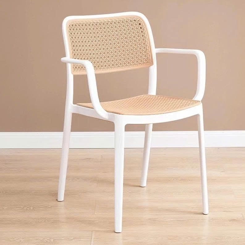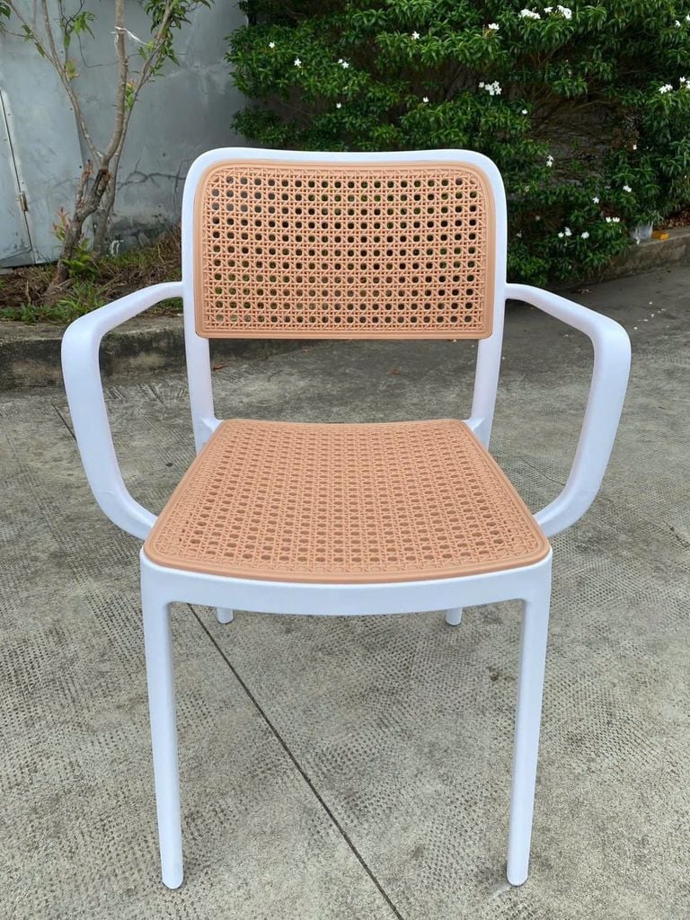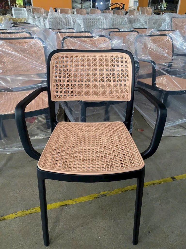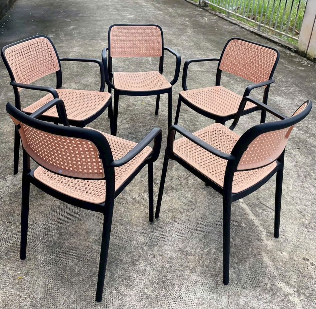 Ghế được trang bị gác tay liền khối, bo cong nhẹ theo dáng ngồi, giúp tư thế ngồi ổn định và thư giãn hơn. Tổng thể ghế gọn gàng, cân đối, dễ dàng kết hợp với các mẫu bàn nhựa hoặc bàn ngoài trời phong cách hiện đại. Sản phẩm không thấm nước, dễ vệ sinh, phù hợp cho các mô hình kinh doanh dịch vụ cần sử dụng thường xuyên cũng như nhu cầu sử dụng cá nhân.