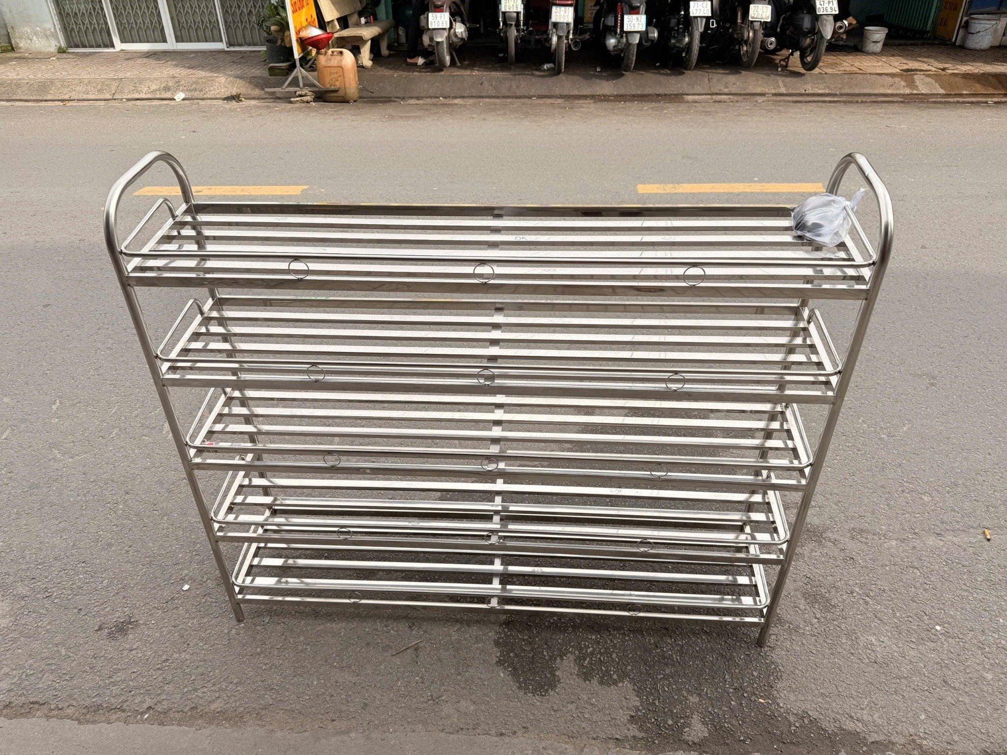 Kệ Giày Dép Inox Hộp Vuông 5 Tầng Ngang 1m2