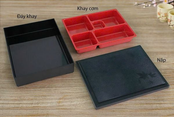 Khay Cơm Phần – Khay Bento Màu Đỏ Đen Sang Trọng
